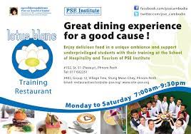 For more information, please visit PSE and its Facebook Page of the Training Restaurant.