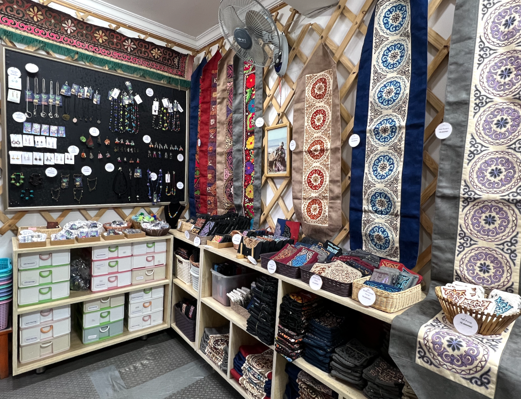 Mary & Martha’s environment offers engaging educational opportunities for young visitors. Children can learn about traditional Mongolian life through tangible objects, discovering how nomadic families live in gers and use handcrafted items in daily life. The colorful Kazakh embroideries with their animal and nature motifs—owls, deer, stars—naturally capture children’s imagination while teaching about symbolism in art. Young visitors can observe different textile techniques and materials, providing hands-on learning about how things are made. The stories of young Kazakh girls creating elaborate wall hangings for their weddings offer age-appropriate cultural education about different life traditions. Parents can use the craft displays to teach children about fair trade, ethical shopping, and how purchases can help families in other countries.